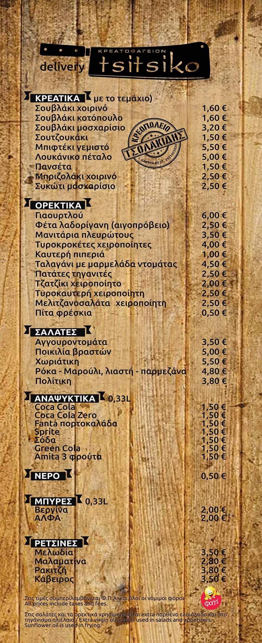 Το αγαπημένο σε όλους "Tsitsiko" έχει ανοίξει για μας φτιάξει τη διάθεση αλλά και για να μας χορτάσει με τις πλούσιες σε ποσότητα και νόστιμες σε γεύση προτάσεις κάθε στιγμή της ημέρας.