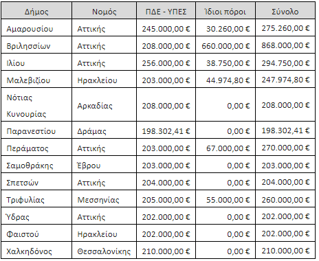 Οι νέες χρηματοδοτήσεις αφορούν τη συντήρηση σχολικών κτιρίων και αύλειων χώρων, την αναβάθμιση παιδικών χαρών και την προμήθεια μηχανημάτων έργου.