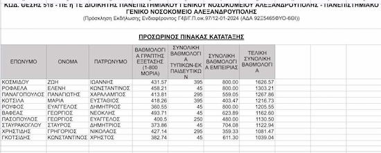 Η αρμόδια Επιτροπή Επιλογής Στελεχών κατήρτισε τους προσωρινούς πίνακες: