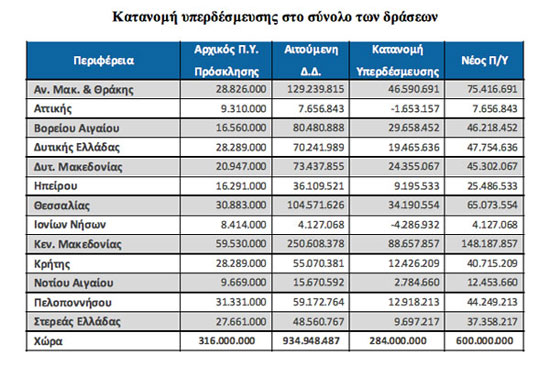 Έτσι οριστικοποιήθηκε η κατανομή των πόρων ανά Περιφέρεια, όπως αποτυπώνεται στον παρακάτω πίνακα, συνεκτιμώντας παράγοντες που άπτονται: