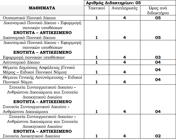 β) Η Σχολή Αστυφυλάκων/Τμήμα Δοκίμων Αστυφυλάκων Διδυμοτείχου προκηρύσσει την πρόσληψη με επιλογή, διδακτικού προσωπικού με ωριαία αποζημίωση, για κάλυψη τις κατωτέρω θέσεις διδακτικού προσωπικού (τακτικών – αναπληρωτών), στα ακόλουθα επαναληπτικά μαθήματα τα οποία θα πραγματοποιηθούν από 04 Σεπτεμβρίου 2017, ημέρα Δευτέρα έως και 08 Σεπτεμβρίου 2017, ημέρα Παρασκευή.