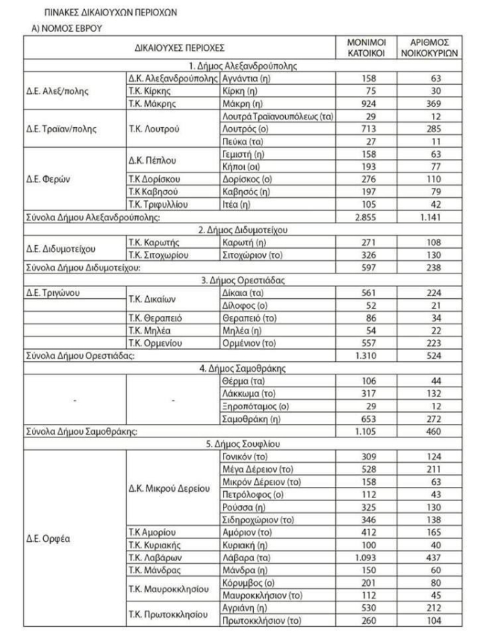 Στον Έβρο, οι δικαιούχοι ανέρχονται σε 4.361. Στην Γεμιστή ήδη εγκαταστάθηκε η εργολαβία. Δείτε τα χωριά του Δήμου Αλεξανδρούπολης, αλλά και όλου του Νομού.