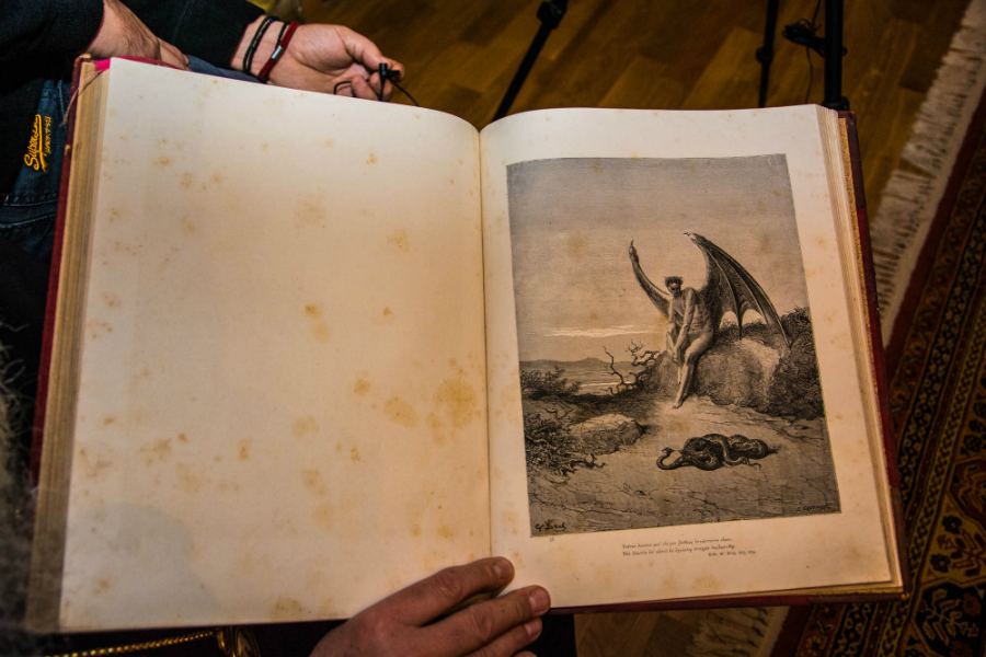 Σε μια προσπάθεια του να καταλάβουμε την αντίδραση του κόσμου σχετικά με τη συσχέτιση του γλυπτού με δαίμονα ή το σατανά ήρθαμε σε επαφή με τον Μητροπολίτη Αλεξανδρούπολης κ.κ. Άνθιμο, ο οποίος μας έδειξε το βιβλίο Μίλτωνος Απολεσθείς Παράδεισος από την προσωπική του Συλλογή βιβλίων.