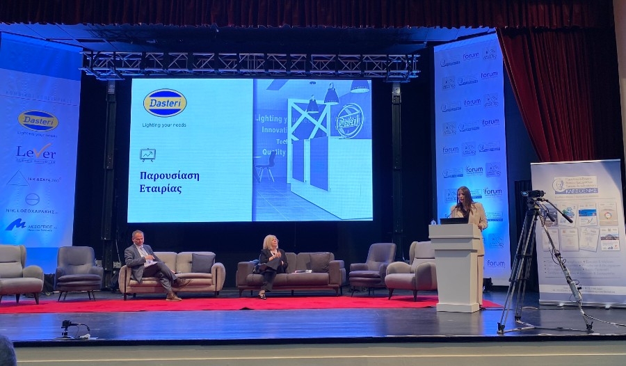«H DASTERI Α.Ε. είναι μία ιδιόκτητη οικογενειακή επιχείρηση η οποία ιδρύθηκε το 1976 στην Αλεξανδρούπολη. Είναι μια εταιρία σχεδιασμού και παραγωγής φωτιστικών οχημάτων καθώς επίσης και φωτιστικών LED εσωτερικών και εξωτερικών χώρων τα οποία παράγει σε δύο πλήρως καθετοποιημένες μονάδες παραγωγής (16.000m 2 ) απασχολώντας πάνω από 80 ανθρώπους», ανέφερε στην έναρξη η κ. Καραντωνίου.