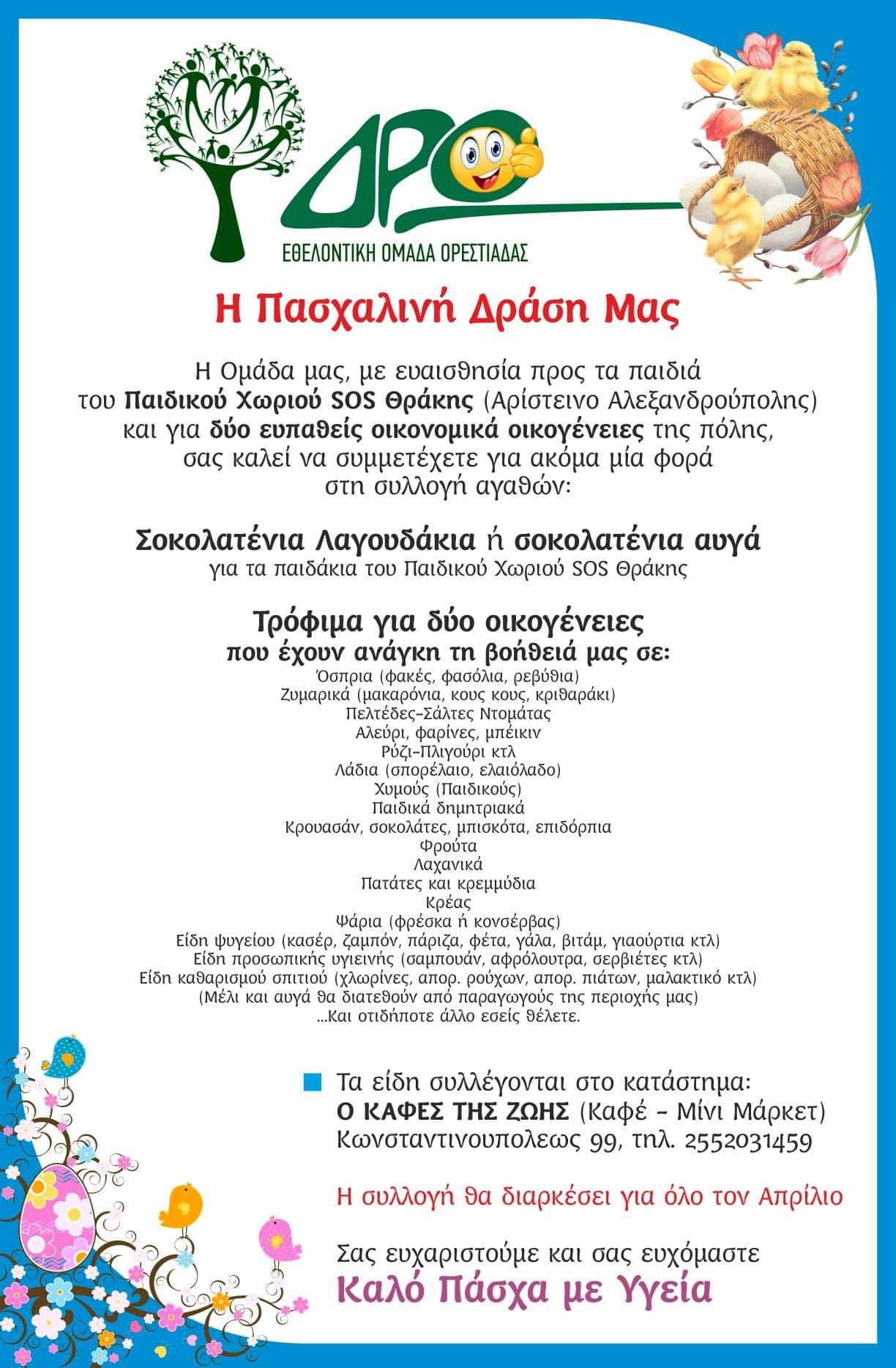 Η εθελοντική ομάδα Ορεστιάδας "Δρώ" μας καλεί να συμμετέχουμε και εμείς στην πασχαλινή δράσης τους!