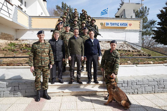Ο Πρωθυπουργός συνοδευόμενος από τον Υπουργό Εθνικής Άμυνας, Νίκο Παναγιωτόπουλο, τον Υπουργό Προστασίας του Πολίτη, Μιχάλη Χρυσοχοΐδη, τον Υφυπουργό παρά τω Πρωθυπουργώ και Κυβερνητικό Εκπρόσωπο, Στέλιο Πέτσα, ενημερώθηκε για την κατάσταση στην περιοχή και τα επιχειρησιακά σχέδια, συνομίλησε και φωτογραφήθηκε με τους στρατιώτες ευχαριστώντας τους για τις υπηρεσίες που προσφέρουν στην πατρίδα.