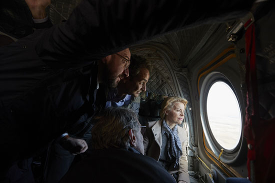Στη συνέχεια, ο Πρωθυπουργός και οι Ευρωπαίοι αξιωματούχοι επιβιβάστηκαν σε ελικόπτερο για να πετάξουν πάνω από τα χερσαία σύνορα με την Τουρκία και στις 14:15 θα προσγειωθούν στην περιοχή της Ορεστιάδας, όπου θα επισκεφτούν το Φυλάκιο 1. Θα ακολουθήσει ενημέρωση από τον Αρχηγό ΓΕΕΘΑ Στρατηγό Κωνσταντίνο Φλώρο.