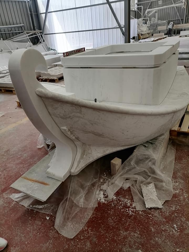 Ο αρχιτέκτονας Μάρκος Δαδιγένης πρότεινε τα μάρμαρα της Θάσου και της Δράμας γι αυτό το λαμπρό έργο τέχνης και να τονίσουμε πως το πρώτο αντίγραφο έχει εγκατασταθεί στην Αλεξανδρούπολη, ενώ το δεύτερο θα τοποθετηθεί και θα δώσει "έναν άλλο αέρα" σε κλινική στο Χιούστον.