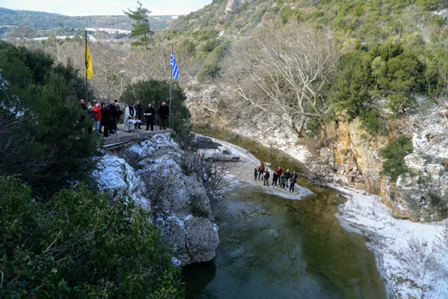 Αψηφώντας το τσουχτερό κρύο κόσμος και ιδιοκτήτες των καλυβών βρέθηκαν στην περιοχή, και κάποιοι τολμηροί κολυμβητές «έπεσαν» στα παγωμένα νερά του ποταμού για να πιάσουν τον Σταυρό.