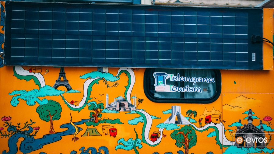 Στην περίπτωση ωστόσο που κάτι «στραβώσει» με τη φόρτιση, υπάρχουν και τα ηλιακά πάνελ του τρίκυκλου. Πιο συγκεκριμένα, στο πίσω μέρος του ρυμουλκούμενου-mounted υπάρχουν ηλιακοί συλλέκτες και στις δύο πλευρές του.