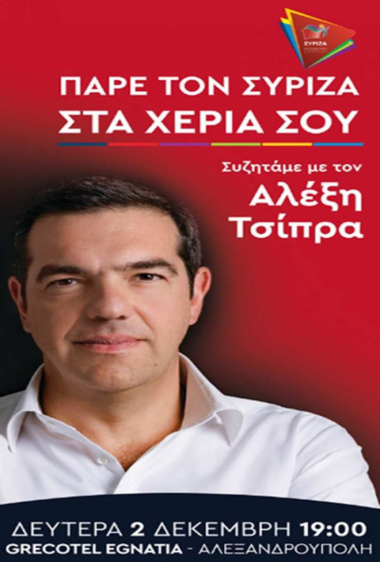Την προσεχή Δευτέρα 2 Δεκεμβρίου ο πρώην πρωθυπουργός θα βρεθεί στην Αλεξανδρούπολη και συγκεκριμένα στο ξενοδοχείο Grecotel.