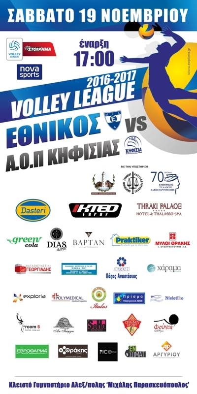 Έπειτα από τις αναμετρήσεις του Εθνικού με τον ΠΑΟΚ, τον Ηρακλή Χαλκίδας, τον Ολυμπιακό και τον Παναθηναϊκό στην 4η αγωνιστική αυτό το Σάββατο, 19 Νοεμβρίου, στις 17:00 ο Εθνικός Αλεξανδρούπολης θα αναμετρηθεί με τον Α.Ο.Π Κηφισιάς.