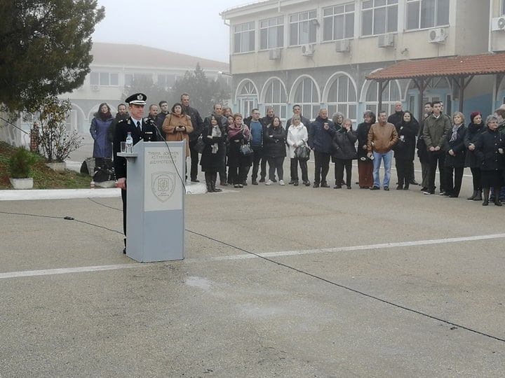Παρέστη, ως εκπρόσωπος της Φυσικής Ηγεσίας, ο Διοικητής της Αστυνομικής Ακαδημίας, Υποστράτηγος Παναγιώτης Κορδολαίμης, ο οποίος απηύθηνε σύντομο χαιρετισμό, ενώ η Αναπληρώτρια Διοικητή του Τμήματος Δοκίμων Αστυφυλάκων Διδυμοτείχου, Αστυνόμος Α' Αναστασία Πουρναρά, ανέγνωσε την Ημερήσια Διαταγή.