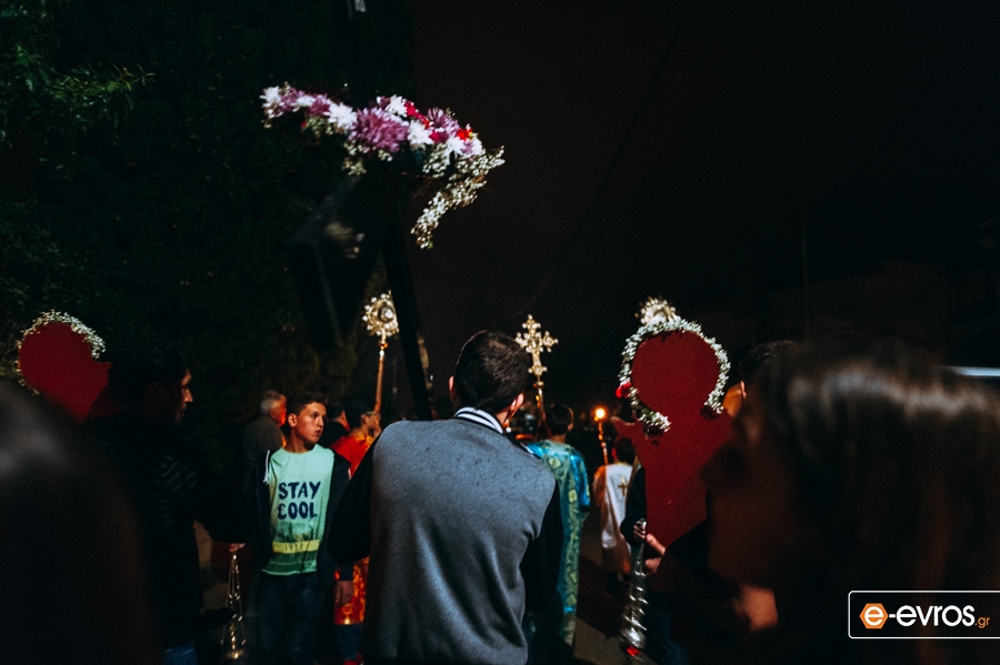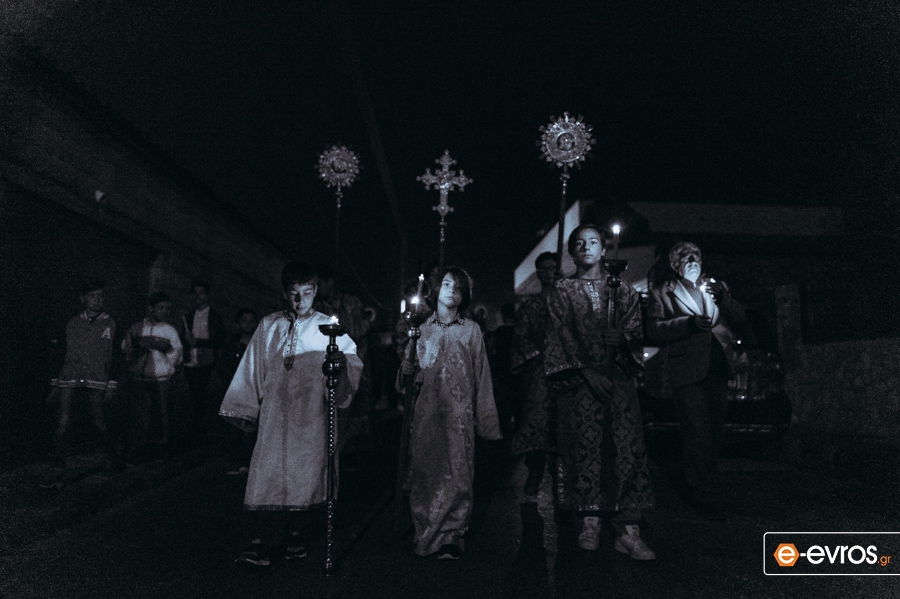 Όταν νυχτώσει, αρχίζει η ακολουθία και η περιφορά του Επιταφίου, κατά τη διάρκεια της οποίας ψάλλονται σε τρεις στάσεις τα λεγόμενα Εγκώμια, μικρά τροπάρια αγνώστου ποιητή.