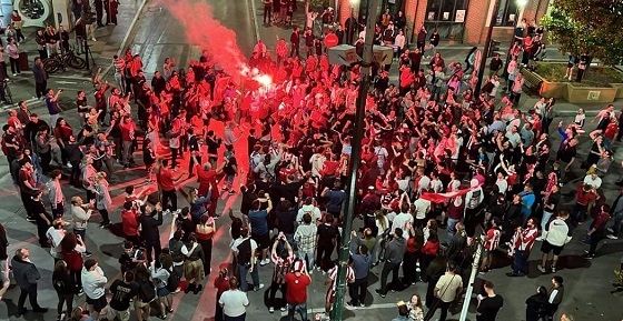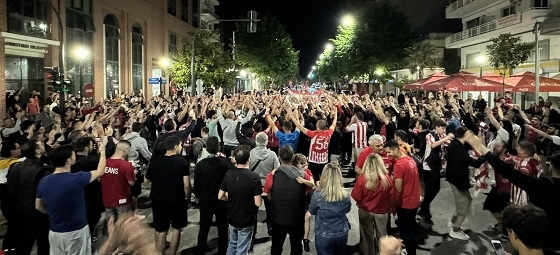 Στην Αλεξανδρούπολη, λίγα λεπτά μόλις μετά το σφύριγμα της λήξης, οι ερυθρόλευκοι οπαδοί άρχισαν να συγκεντρώνονται στην κεντρική λεωφόρο για να γιορτάσουν με τραγούδια, συνθήματα, πυρσούς και καπνογόνα.