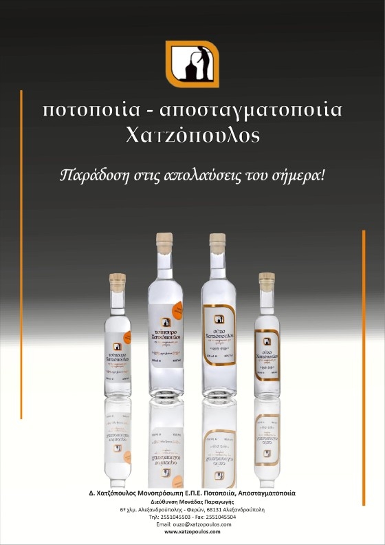 H Πoτoπoιία - Απoσταγματoπoιία "Χατζόπουλοs" με έδρα την Αλεξανδρούπολη, εδώ και χρόνια μας προσέχει με τον καλύτερο τρόπο, καθώς το ούζο και το τσίπουρο που φτιάχνουν μας αφήνει κάθε φορά που το γευόμαστε δίχως λόγια!