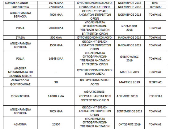 Η κατάσχεση των προϊόντων αφορά το διάστημα από τον Οκτώβριο του 2018 έως τον Οκτώβριο του 2019.