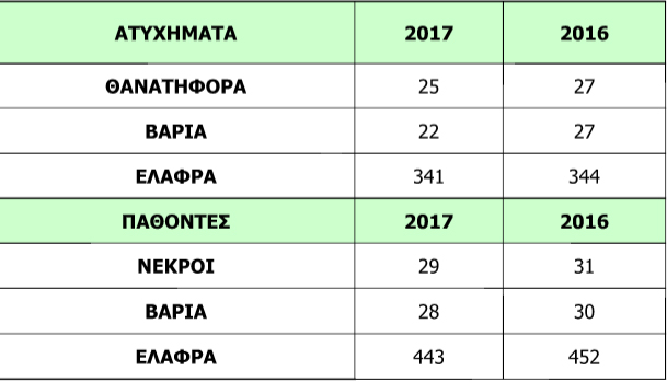 Ειδικότερα, τα τροχαία ατυχήματα και οι παθόντες είναι: