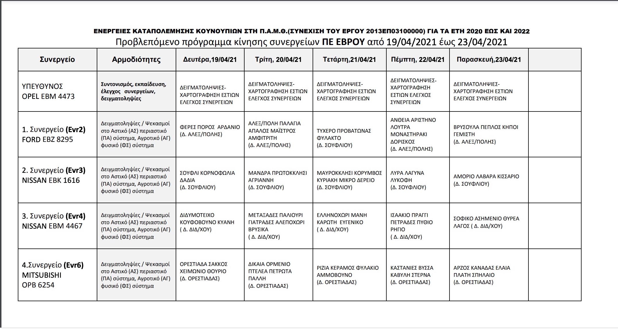 Δείτε το εβδομαδιαίο πρόγραμμα των ψεκασμών για τον Έβρο εδώ, αλλά και στην φωτογραφία που ακολουθεί: