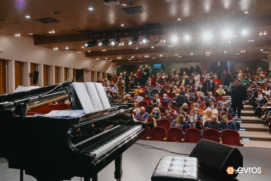 Η αίθουσα του Πνευματικού Κέντρου πλημμύρισε από μελωδίες των μεγάλων κλασικών συνθετών, τις οποίες αριστοτεχνικά απέδωσε στο πιάνο η Καθηγήτρια του Δημοτικού Ωδείου Αλεξανδρούπολης Βιολέττα Γρηγοριάδου.