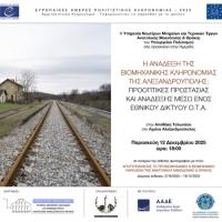 Η Υπηρεσία Νεωτέρων Μνημείων & Τεχνικών Έργων Ανατολικής Μακεδονίας & Θράκης του Υπουργείου Πολιτισμού, διοργανώνει Ημερίδα με τίτλο: «Η Ανάδειξη της Βιομηχανικής Κληρονομιάς της Αλεξανδρούπολης: Προοπτικές προστασίας και ανάδειξης μέσω ενός Εθνικού Δικτύου Ο.Τ.Α.», την Παρασκευή 12 Δεκεμβρίου 2025 στις...