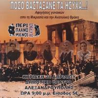 Οι «Περιπλανώμενοι Θεατρίνοι» παρουσιάζουν την παράσταση την Κυριακή 21 Απριλίου στο Δημοτικό Θέατρο Αλεξανδρούπολης στις 9:00 μ. μ. Η παράσταση βασίζεται σε αφηγήσεις γυναικών από τη Μικρασία και την Ανατολική Θράκη. 5 γυναίκες...5 κόρες...5 μανάδες....μιλούν, τραγουδούν, αναπολούν...