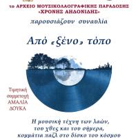 Το ΣΥΝΟΛΟ ΠΑΡΑΔΟΣΙΑΚΗΣ ΜΟΥΣΙΚΗΣ της Μητρόπολης Αλεξανδρούπολης σε συνεργασία με το ΑΡΧΕΙΟ ΜΟΥΣΙΚΟΛΑΟΓΡΑΦΙΚΗΣ ΠΑΡΑΔΟΣΗΣ «ΧΡΟΝΗΣ ΑΗΔΟΝΙΔΗΣ» διοργανώνουν συναυλία: Από «ξένο» τόπο. Η μουσική τέχνη των λαών, του χθες και του σήμερα, κομμάτια παζλ στο δίσκο του κόσμου τη Δευτέρα 8...