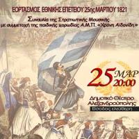 Η ΧΙΙ Μηχανοκίνητη Μεραρχία Πεζικού «ΕΒΡΟΥ» στο πλαίσιο του εορτασμού της εθνικής επετείου της «25ης Μαρτίου 1821», διοργανώνει επετειακή εκδήλωση με τη συμμετοχή της Στρατιωτικής Μουσικής και της παιδικής χορωδίας Α.Μ.Π. «Χρόνης Αϊδονίδης». Η εκδήλωση θα πραγματοποιηθεί την...