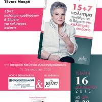 Παρουσίαση του βιβλίου "15+7 πολύτιμα "μαθήματα" & βήματα για καλύτερες σχέσεις" της Τένιας Μακρή