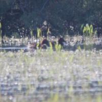Μία αγριόγατα και μία καστανόπαπια στο Δέλτα του Έβρου.