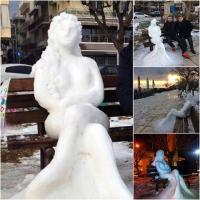 Αν και η κακοκαιρία που έπληξε την περιοχή ήταν σφοδρή, ωστόσο μας κράτησε το καλύτερο για το τέλος. Ο λόγος για το γλυπτό από πάγο με τη μορφή γοργόνας ή αλλιώς την Αριάδνη που κόσμησε αναπάντεχα το παγκάκι πλησίον του...