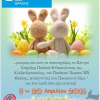 Για δεύτερη συνεχόμενη χρονιά και ενόψει των εορτών του Πάσχα το Κέντρο Στήριξης Παιδιού & Οικογένειας Αλεξανδρούπολης των Παιδικών Χωριών SOS Ελλάδος προσκαλεί όποιον επιθυμεί να γίνει "Νονός" ή "Νονά" φτιάχνοντας ένα πασχαλινό δέμα για ένα παιδί που βρίσκεται σε...