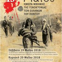 Οι 8 Πολιτιστικοί Ποντιακοί Σύλλογοι που λειτουργούν στα όρια του Δήμου Αλεξανδρούπολης τιμούν την ιερή μνήμη των θυμάτων της Γενοκτονίας και σας προσκαλούνε να παρευρεθείτε το Σάββατο 19 Μαΐου 2018 και ώρα 7:30 μ.μ. στο Δημοτικό Θέατρο Αλεξανδρούπολης. Πρόγραμμα «Έξοδος» - Θεατρικό Δρώμενο. Ερμηνεύουν: Ουρανία...