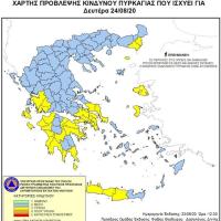 Σύμφωνα με το Χάρτη Πρόβλεψης Κινδύνου Πυρκαγιάς που εκδίδει η Γενική Γραμματεία Πολιτικής Προστασίας του Υπουργείου Εσωτερικών (www.civilprotection.gr), για αύριο Δευτέρσ 6 Ιουλίου 2020, προβλέπεται υψηλός κίνδυνος πυρκαγιάς (κατηγορία κινδύνου 3) για τις εξής περιοχές: Αττική, Εύβοια, Βοιωτία, Σποράδες, Χαλκιδική, Έβρο, Θάσο...