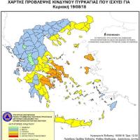 Σύμφωνα με το Χάρτη Πρόβλεψης Κινδύνου Πυρκαγιάς, που εκδίδει η Γενική Γραμματεία Πολιτικής Προστασίας του Υπουργείου Εσωτερικών (www.civilprotection.gr), για σήμερα Σάββατο προβλέπεται πολύ υψηλός κίνδυνος πυρκαγιάς (κατηγορία κινδύνου 4) για τις εξής περιοχές: · Περιφέρεια Βορείου Αιγαίου (Λέσβος...