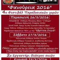 Ο Λαογραφικός Πολιτιστικός σύλλογος Άνω Οινόης Ορεστιάδας «Το Κρασοχώρι», σας προσκαλεί στις εκδηλώσεις «Φανούρεια 2016», που διοργανώνει κάθε χρόνο προς τιμήν του Αγίου Φανουρίου και στην μνήμη των Γκαγκαβούζηδων προγόνων μας από το Κρασοχώρι Αδριανουπόλεως, σε συνδιοργάνωση με την Περιφερειακή...