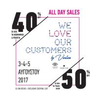 Με μότο "We love our customers" τα καταστήματα Vartan έχουν ετοιμάσει ένα γιορτινό τριήμερο για όλους εσάς που όλα αυτά τα χρόνια τους δείχνετε την αγάπη σας και την προτίμηση σας. Στις 3 - 4 & 5 Αυγούστου διοργανώνει ένα καλοκαιρινό πάρτυ εκπτώσεων, στο οποίο...
